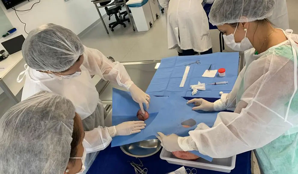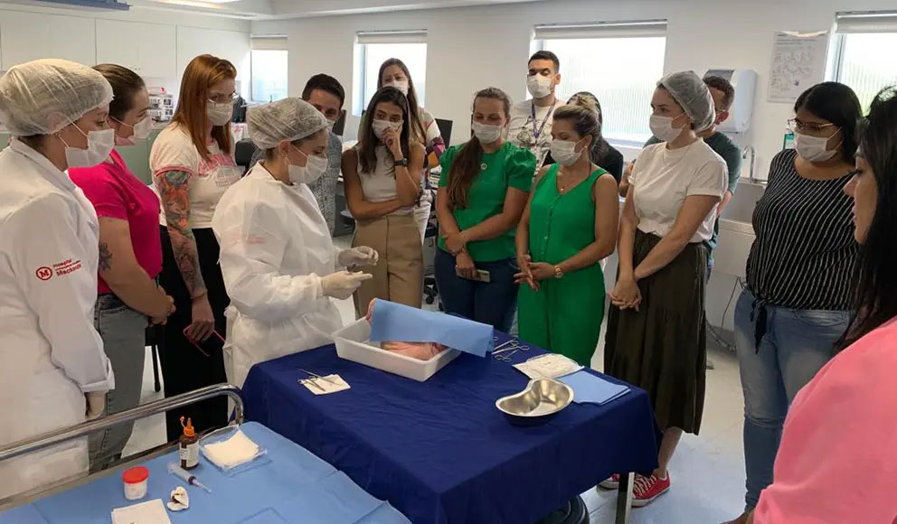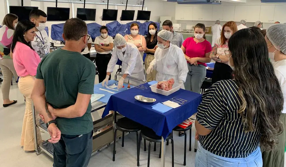A equipe do Banco de Multitecidos Humanos do HUEM realizou, em 10 de fevereiro, um treinamento para profissionais de todo o estado do Paraná, em parceria com a Secretaria de Estado de Saúde (Sesa). O evento “Treinamento teórico e prático de seleção de doadores de tecidos oculares e enucleação de globos oculares” aconteceu na Faculdade Evangélica Mackenzie do Paraná (Fempar). Dr. Leon Grupenmacher, diretor do Banco de Multitecidos do HUEM, destacou a importância dessa iniciativa: “A Central Estadual de Transplantes solicitou esse treinamento para capacitar as diversas comissões de diferentes hospitais do Paraná, com objetivo de ampliar a capacitação para a retirada de globos oculares e, dessa forma, incentivar o aumento da doação”. Estiveram presentes no evento os profissionais das Comissões Intra-Hospitalares para Doação de Órgãos e Tecidos para Transplantes (CIHDOTTs) e das Organizações de Procura de Órgãos (OPOs) do estado do Paraná, em busca do aprimoramento da captação dos tecidos oculares.