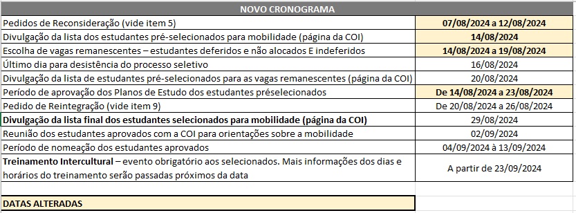Em 29.08.2024 - CLIQUE AQUI para acessar a lista final dos estudantes Selecionados para Mobilidade