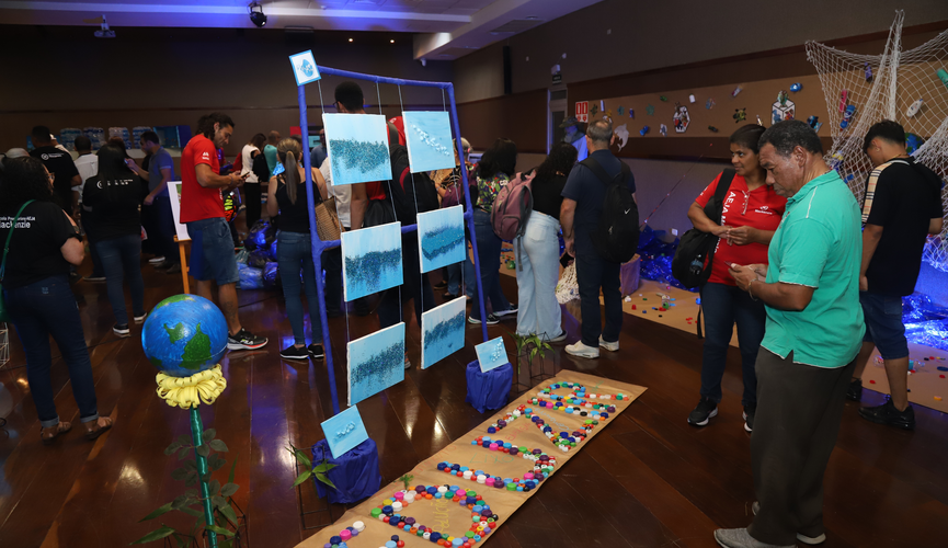 Durante quatro dias, quem passasse pelo auditório da Escola Americana poderia vislumbrar os trabalhos artísticos, todos desenvolvidos sob o tema Água e Sustentabilidade. “Abordamos o uso consciente da água, que é um elemento importante para a vida humana e de todos os seres vivos na natureza. Boa parte dos alunos trabalham com a coleta, a triagem e a reciclagem de resíduos (reciclagem). A intenção foi levá-los a buscar um olhar crítico e sensível sobre esta temática, além da busca pela renda familiar”, explica a professora de Artes da AEJA, Gilvania Altina dos Santos Coelho.