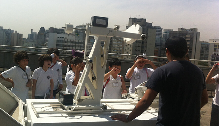 Na visita, as crianças conheceram o Celóstato (jogo de espelhos) que acoplado ao telescópio, projeta em tempo real as atividades do sol. O CRAAM é um centro de pesquisas operado mediante convênio entre o Mackenzie e o MCT/INPE - Instituto Nacional de Pesquisas Espaciais