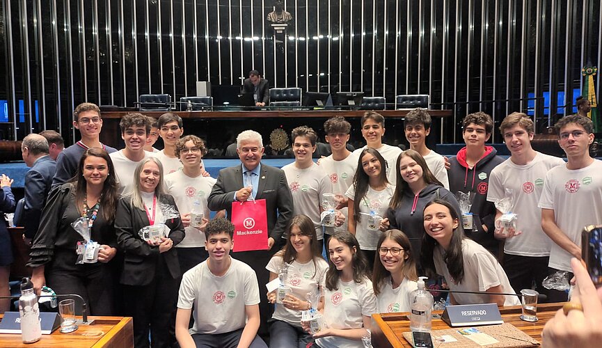 O senador Marcos Pontes, empolgado com a iniciativa das Olimpíadas do Conhecimento, realizada pelo Colégio Presbiteriano Mackenzie Brasília (CPMB), prestigiou os alunos de maior destaque com convite para participarem de evento no Senado. O astronauta homenageou a educação do Mackenzie na celebração do Dia da Dia da Educação Profissional e Tecnológica (EPT), em 13 de novembro.