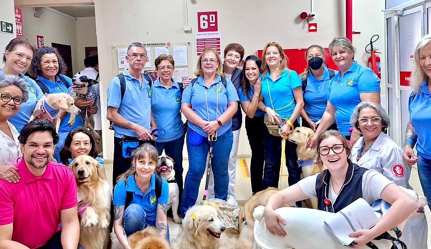 Os pacientes do serviço de cuidados paliativos adulto do Hospital Universitário Evangélico Mackenzie (HUEM) receberam, na última quinta-feira, 26 de março, uma visita especial. Cães do projeto “Amigo Bicho” e seus tutores estiveram no local, levando um pouco de alegria e descontração aos internados. Durante cerca de uma hora, os “visitantes” passaram pelos quartos e puderam interagir com os pacientes, levando sorrisos e momentos de acolhimento.