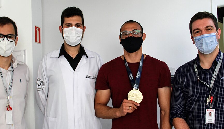 O mês de setembro foi especial para o jovem Pedro Vinícius Oliveira. Após mais de um ano afastado dos tatames, no dia 12 de setembro ele foi o vencedor de mais uma etapa do Campeonato Paranaense de Jiu-jitsu na categoria meio-pesado, faixa roxa. A medalha de ouro teve um sabor especial pois foi a primeira competição que o atleta disputou após a cirurgia no joelho que fez em março deste ano no Hospital Universitário Evangélico Mackenzie (HUEM).