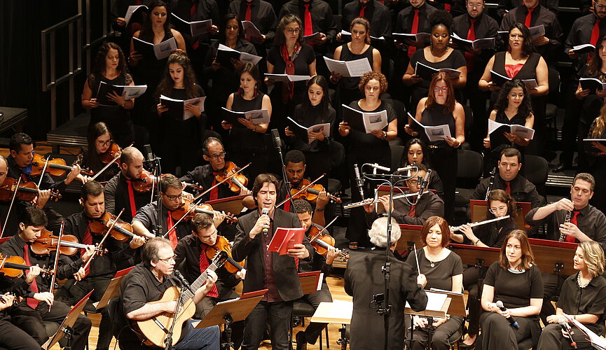 As vozes e instrumentos do Coro e Orquestra Universitários entoaram a cantata “Consola Meu Povo”, na noite do dia 17 de abril, durante a apresentação de Páscoa realizada no campus Higienópolis do Mackenzie. A composição de Guilherme Kerr e Jorge Rehder, inspirada nas palavras do profeta Isaías, foi escrita há 15 anos, mas foi a primeira vez que foi apresentada com coral e orquestra. O evento foi organizado pela Chancelaria do Mackenzie em parceria com a Coordenadoria de Arte e Cultura (CAC) da Universidade Presbiteriana Mackenzie (UPM).