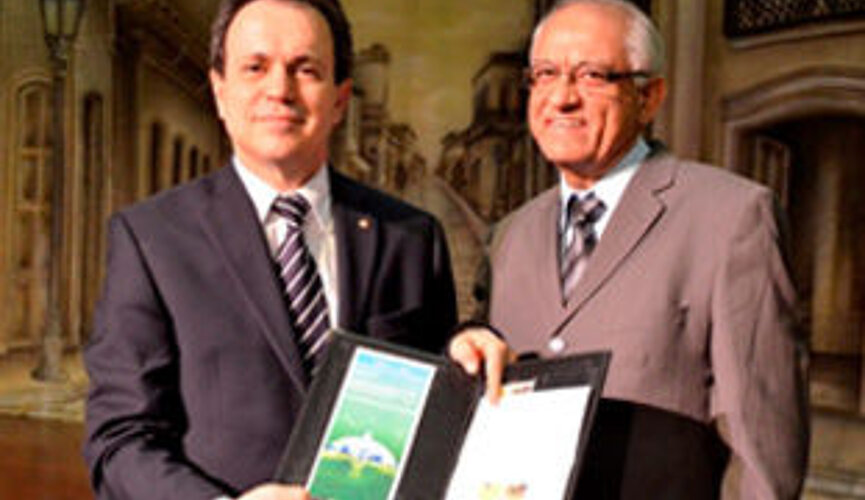 Na foto o presidente do IPM, Maurício Melo de Meneses (esq.) e diretor regional do Correios, Antonio Tomás.