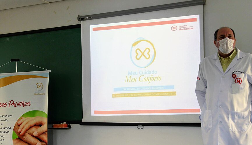 A equipe de cuidados paliativos do Hospital Universitário Evangélico Mackenzie (HUEM) iniciou na segunda-feira, 19 de outubro, 1ª Semana dos Cuidados Paliativos da instituição, sob o tema Meu Cuidado, Meu Conforto, com palestras, treinamentos e diálogo a respeito do assunto, alinhado ao Dia Mundial dos Cuidados Paliativos, celebrado em 10 de outubro.