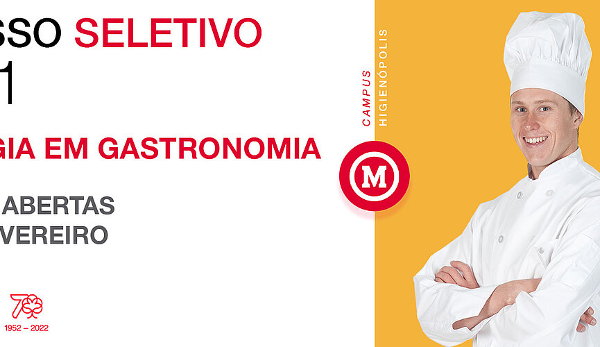 Estão abertas, até o dia 22 de fevereiro, as inscrições para o processo seletivo do curso Tecnologia em Gastronomia da Universidade Presbiteriana Mackenzie (UPM). A formação tem como foco a prática e conta com professores renomados no meio gastronômico. Todas as informações sobre o processo seletivo estão no edital, que você pode conferir aqui.