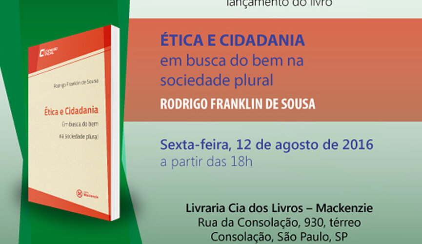 A discussão acerca da história e a aplicação da ética no mundo contemporâneo é o tema central do livro Ética e cidadania: em busca do bem na sociedade plural, de Rodrigo Franklin de Sousa, que será lançado na sexta-feira (12), às 18h. O lançamento ocorrerá na Cia dos Livros, localizada no térreo do Edifício João Calvino, no campus Higienópolis, da Universidade Presbiteriana Mackenzie (UPM).