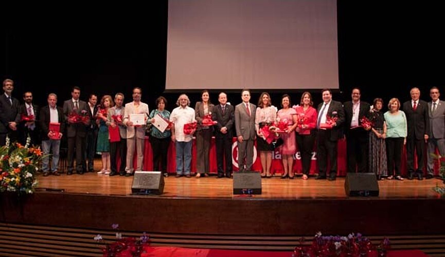 Na foto: Os professores premiados e as autoridades do Instituto e da Universidade.