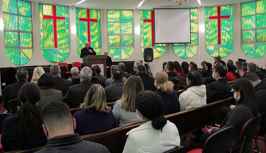 O culto em celebração aos 63 anos do HUEM contou com a pregação do reverendo Levy Oliveira, pastor da Igreja Presbiteriana da Silva Jardim, em Curitiba. “A razão de ser dessa casa de saúde é o paciente, aquele que precisa, aquele que está enfermo e o evangelho faz toda a diferença na vida de quem atende e também para quem é atendido”, apontou Oliveira.