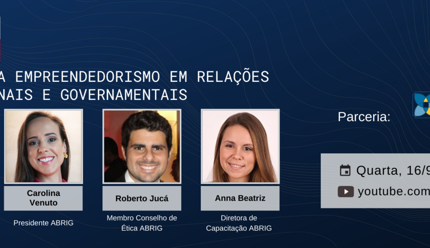 A programação inédita foi construída em parceria com a Associação Brasileira de Relações Institucionais e Governamentais (ABRIG) e terá como foco a construção profissional e o perfil de liderança importantes para o sucesso dos interessados em seguir nesta possibilidade da carreira. O encontro contará com a participação da fundadora da Consultoria ÉTICA Inteligência Política, Carolina Venuto; da Associada e Diretora de Capacitação da ABRIG, Anna Beatriz; e do Associado membro do Conselho de Ética da ABRIG, Roberto Jucá. A mediação da conversa ficará à cargo do coordenador do curso de Pós-Graduação em RIG da FPMB, Márcio Coimbra.