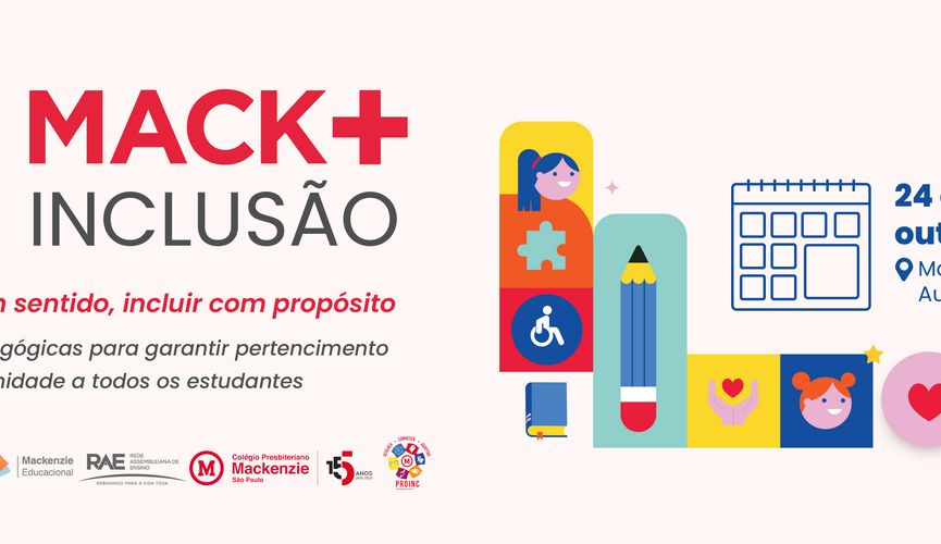 O Sistema Mackenzie de Ensino (SME), em parceria com a Superintendência de Educação Básica do Instituto Presbiteriano Mackenzie (IPM) e o Colégio Presbiteriano Mackenzie São Paulo (CPM), promoverá o Mack+Inclusão 2025, nos dias 24 e 25 de outubro, no auditório Ruy Barbosa, campus Higienópolis.