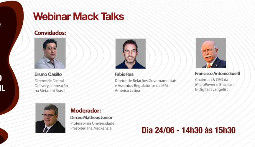 No dia 24 de junho, às 14h30, será realizado a terceira edição do MackTalks, série de encontros virtuais para debater cenários e tendências do mundo corporativo. O webinar debaterá o impacto da Transformação Digital nos modelos de negócio, estruturas organizacionais, simplificação de processos, mentalidade agile, novos modelos de liderança, novos cargos, novas competências, mercado de trabalho.