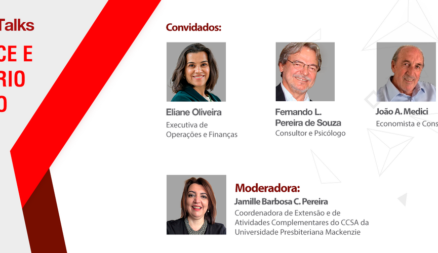 O debate on-line terá duração de aproximadamente uma hora e contará com a participação da executiva de operações e finanças, Eliane Oliveira; do consultor e psicólogo, Fernando Lanzer Pereira De Souza; do economista e consultor, João Alberto Medici; e do administrador pela FGV e consultor, João Cirilo Miedzinski. O debate será conduzido pela coordenadora de Extensão e de Atividades Complementares do Centro de Ciências Sociais Aplicadas (CCSA) da Universidade Presbiteriana Mackenzie (UPM), professora Jamille Barbosa Pereira.