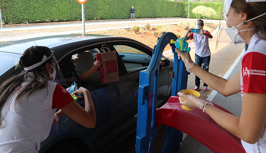 O Mackenzie Voluntário Brasília entregou, nesta quarta-feira, 14 de outubro, mais de 200 brinquedos à administração da Associação Viver. Os itens foram recebidos pelo projeto Mãos à Obra, realizado em parceria com a Educação Infantil do Colégio Presbiteriano Mackenzie Brasília Internacional, por meio de doações das crianças mackenzistas, que no último sábado, dia 10 de outubro, foram até à Escola para participar da primeira etapa da ação, incorporada ao Drive Thru Solidário. Os pequenos deixaram as centenas de brinquedos usados, porém em bom estado de conservação, e ainda puderam rever as professores e os professores para diminuir a saudade.