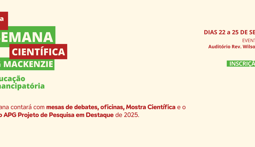A Associação de Pós-Graduandos (APG) da Universidade Presbiteriana Mackenzie (UPM) realizará a Edição 2025 do Prêmio APG – Projeto de Pesquisa em Destaque, para todos os estudantes de mestrado e doutorado do Mackenzie. A premiação faz parte da II Semana Científica, que acontecerá entre os dias 22 e 25 de setembro, no formato híbrido, no campus Higienópolis.