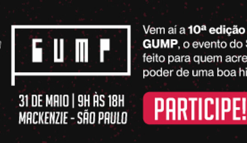 No dia 31 de maio, das 9h às 18h, o Centro de Comunicação e Letras (CCL) da Universidade Presbiteriana Mackenzie (UPM) será palco da 10ª edição do GUMP – evento de conteúdo, narrativas e criatividade voltado à área de comunicação. Realizado em parceria com o Mackenzie, o encontro contará com a presença de profissionais de destaque no mercado e trará temas como storytelling, estratégia, inovação e marketing.