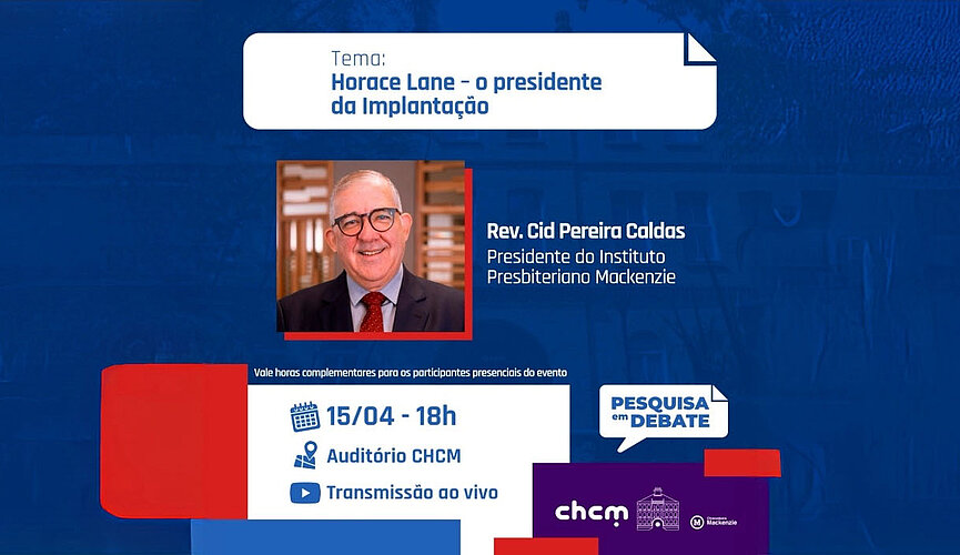Esta edição tem como tema Horace Lane – o presidente da implantação e contará com a palestra do reverendo Cid Pereira Caldas, diretor‑presidente do IPM. A mediação ficará por conta do reverendo Robinson Grangeiro, chanceler do Mackenzie, e do professor Eduardo Abrunhosa, também diretor de Administração do IPM.