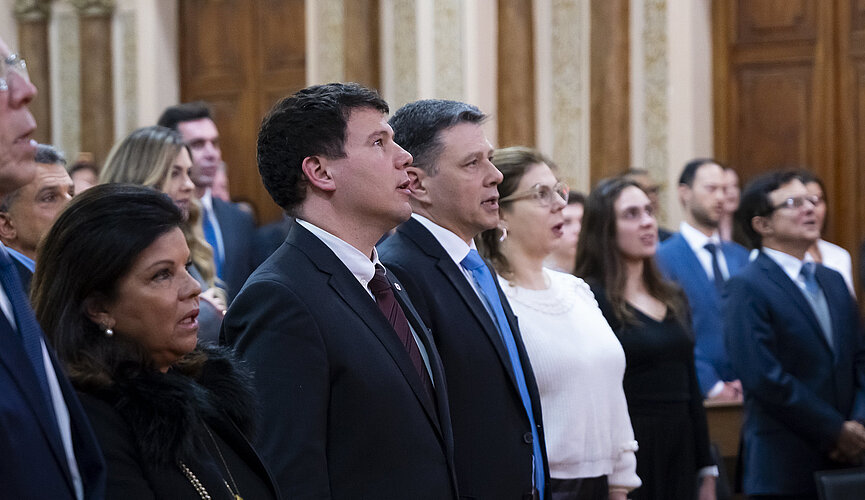 Compuseram a mesa o vereador Professor Euler; a secretária municipal de Saúde, Beatriz Batistella Nadas; o presidente do Conselho Regional de Medicina do Estado do Paraná, Romualdo José Ribeiro Gama; e o presidente da Associação Médica do Paraná, Nerlan Tadeu Gonçalves de Carvalho.