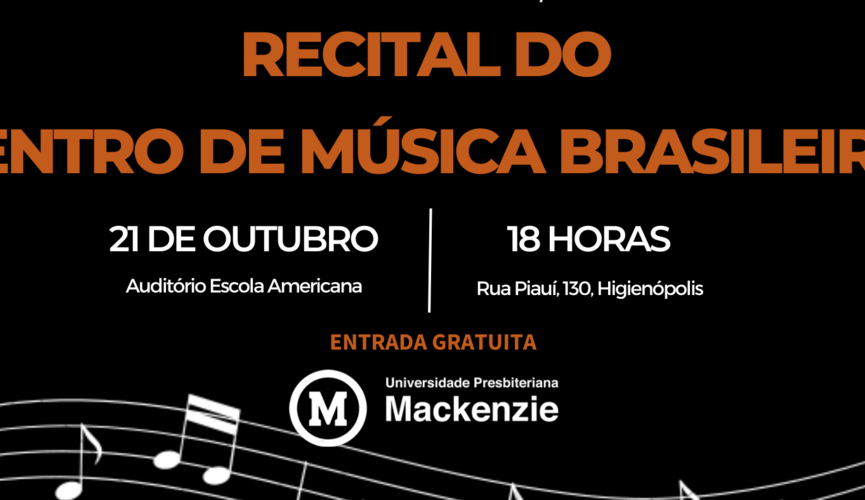 A Pró-Reitoria de Extensão e Cultura (PREC) da Universidade Presbiteriana Mackenzie (UPM), por meio da Coordenadoria de Arte e Cultura (CAC), promoverá no sábado, 21 de outubro, às 18h, mais um recital do Centro de Música Brasileira (CMB), que acontecerá no auditório Escola Americana, campus Higienópolis.