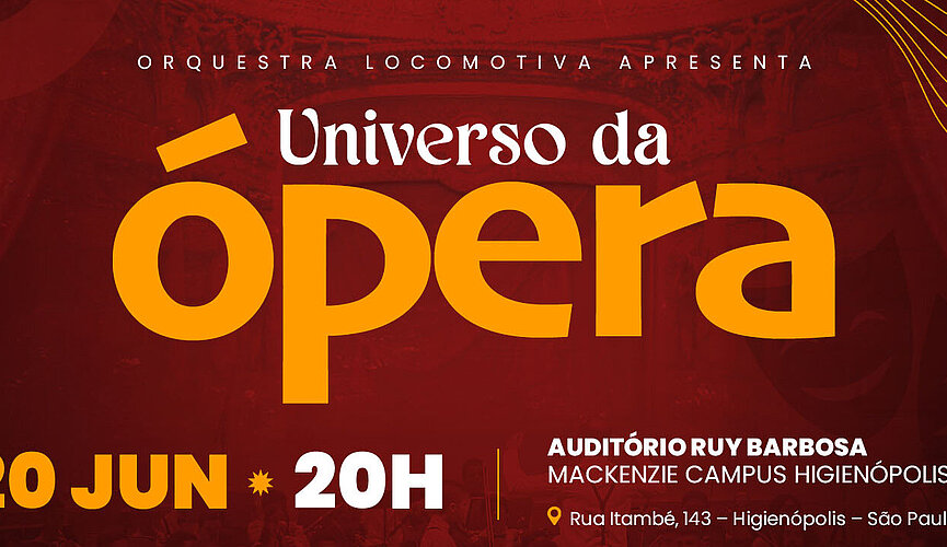A Universidade Presbiteriana Mackenzie (UPM) receberá no próximo dia 20 de junho, terça-feira, a apresentação Universo da Ópera da Orquestra Locomotiva, no auditório Ruy Barbosa, campus Higienópolis. A iniciativa terá participação especial do Coro Universitário Mackenzie, sob regência do maestro Parcival Módolo.