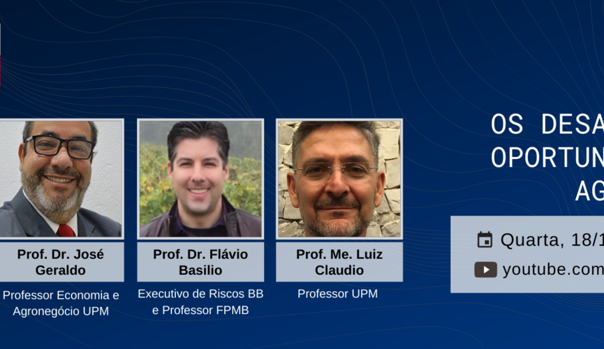 Os convidados da noite serão os professores da Universidade Presbiteriana Mackenzie, José Geraldo e Luiz Claudio, além do líder do Grupo de Estudos do Pensamento Complexo (GECOM) do Conselho Nacional de Desenvolvimento Científico e Tecnológico (CNPq), Marlon Vinícius Brisola. A condução do debate ficará à cargo do executivo de riscos do Banco do Brasil e professor da FPMB, Flávio Basílio.