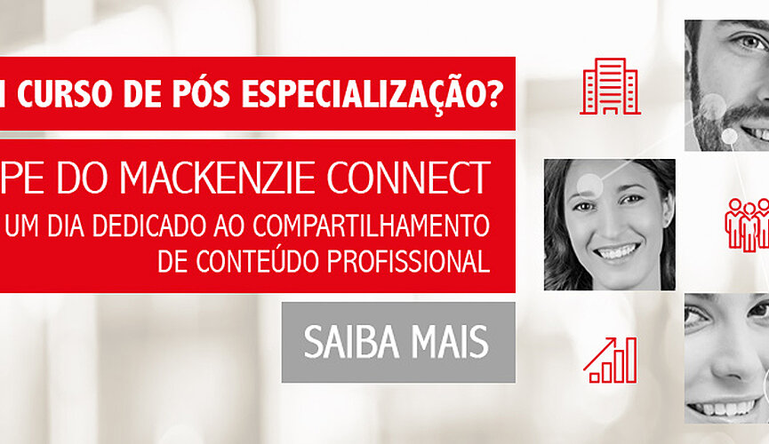 No dia 09 de novembro, das 9h às 13h, acontecerá o Mackenzie Connect, encontro que busca aprimorar a perspectiva profissional de pessoas graduadas por meio de uma Especialização, com foco no mercado de trabalho. Mais de 60 cursos de Pós-Graduação Lato Sensu Especialização são oferecidos pela Universidade Presbiteriana Mackenzie (UPM), nas modalidades presencial, semipresencial e EaD, além dos módulos internacionais opcionais, promovidos por universidades parceiras. As inscrições estão abertas!