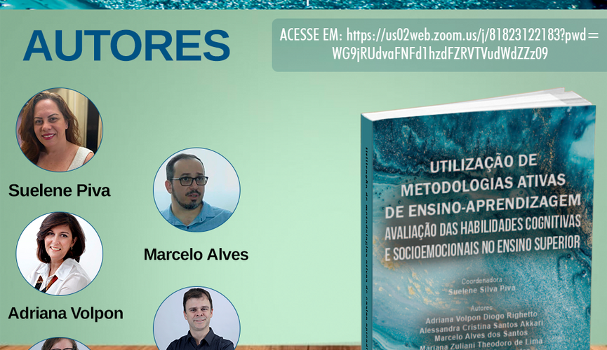 Professores do Centro de Ciências e Tecnologia (CCT) da Universidade Presbiteriana Mackenzie (UPM), campus Campinas, lançarão, no dia 26 de agosto, às 18h, o livro Utilização de Metodologias Ativas de Ensino Aprendizagem: Avaliação das Habilidades Cognitivas e Socioemocionais no Ensino Superior, como o resultado de uma pesquisa que mostra como diferentes métodos de ensino ajudam a desenvolver habilidades e motivar estudantes. O evento será on-line, transmitido via Zoom.