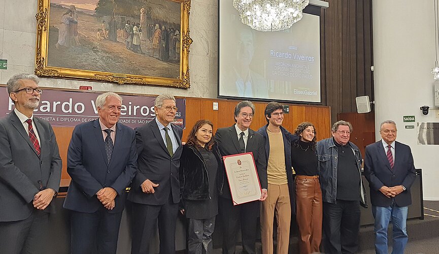 Na noite de segunda-feira, dia 15 de maio, o mackenzista Ricardo Viveiros, jornalista e escritor, foi homenageado pela Câmara Municipal de São Paulo. Viveiros foi condecorado com a Medalha Anchieta, mais alta honraria concedida pela Câmara, e também com o Diploma de Gratidão da Cidade de São Paulo. A iniciativa partiu do vereador Eliseu Gabriel para reconhecer a atuação dos mais de 40 anos de Viveiros em rádios, jornais, TVs e revistas na capital paulista.