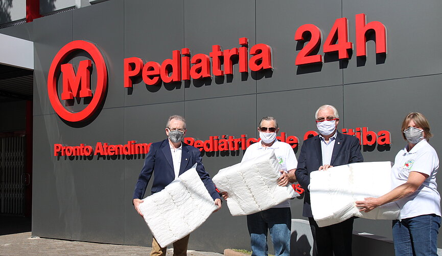 O Hospital Universitário Evangélico Mackenzie (HUEM) recebeu do Rotary Club Curitiba Imigrantes a doação de 84 pacotes de fraldas geriátricas, com 50 unidades cada, totalizando 4,2 mil fraldas geriátricas, que serão disponibilizadas a pacientes em situação de vulnerabilidade social.
