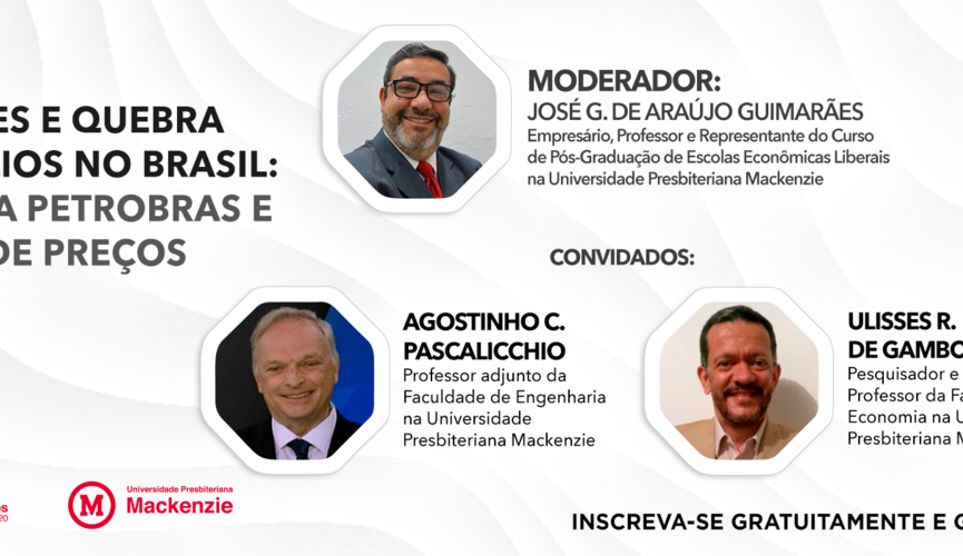 No dia 08 de Abril, às 19h, a Universidade Presbiteriana Mackenzie (UPM), em parceria com o Mackenzie Soluções, área de negócios do Instituto Presbiteriano Mackenzie (IPM), realizará o webinar com o tema Privatizações e Quebra de Monopólios no Brasil: A Questão da Petrobras e da Política de Preços. É necessário realizar inscrições prévias para participar do evento.