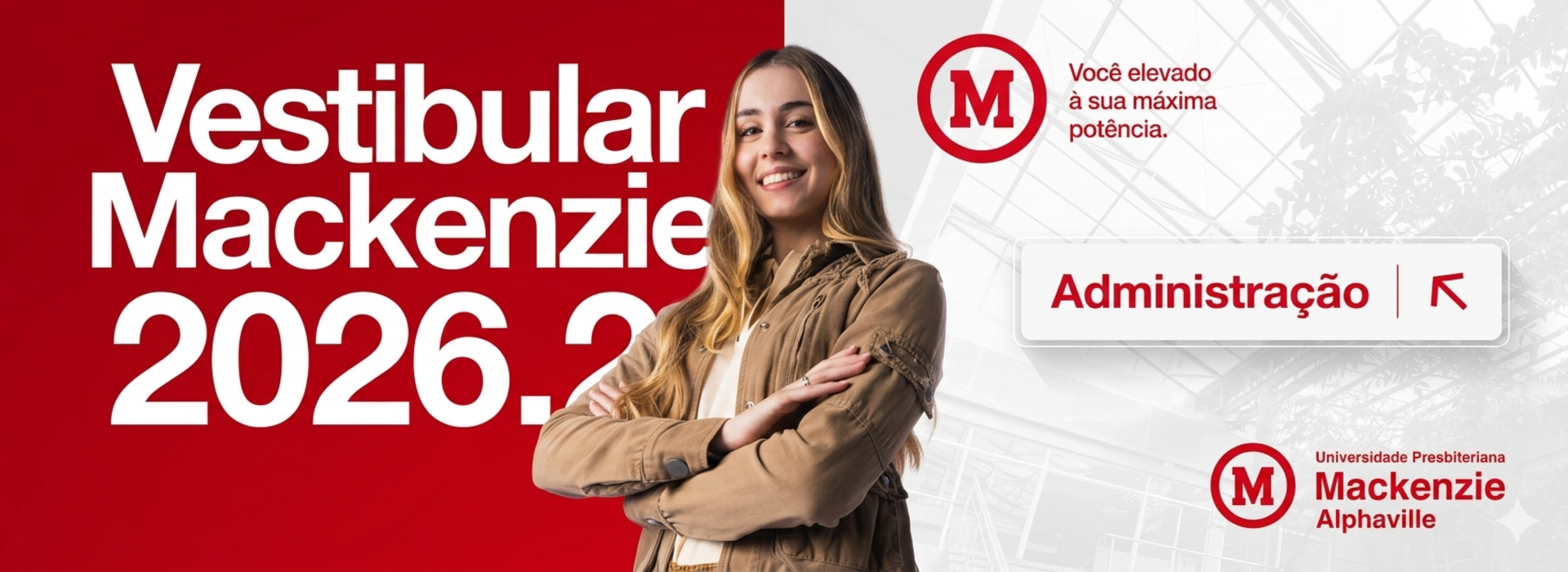Estão abertas as inscrições para o Vestibular Mackenzie 2026.2. Não perca a oportunidade de cursar Administração, campus Alphaville, em uma das instituições mais reconhecidas do país. Para mais informações, clique aqui.
